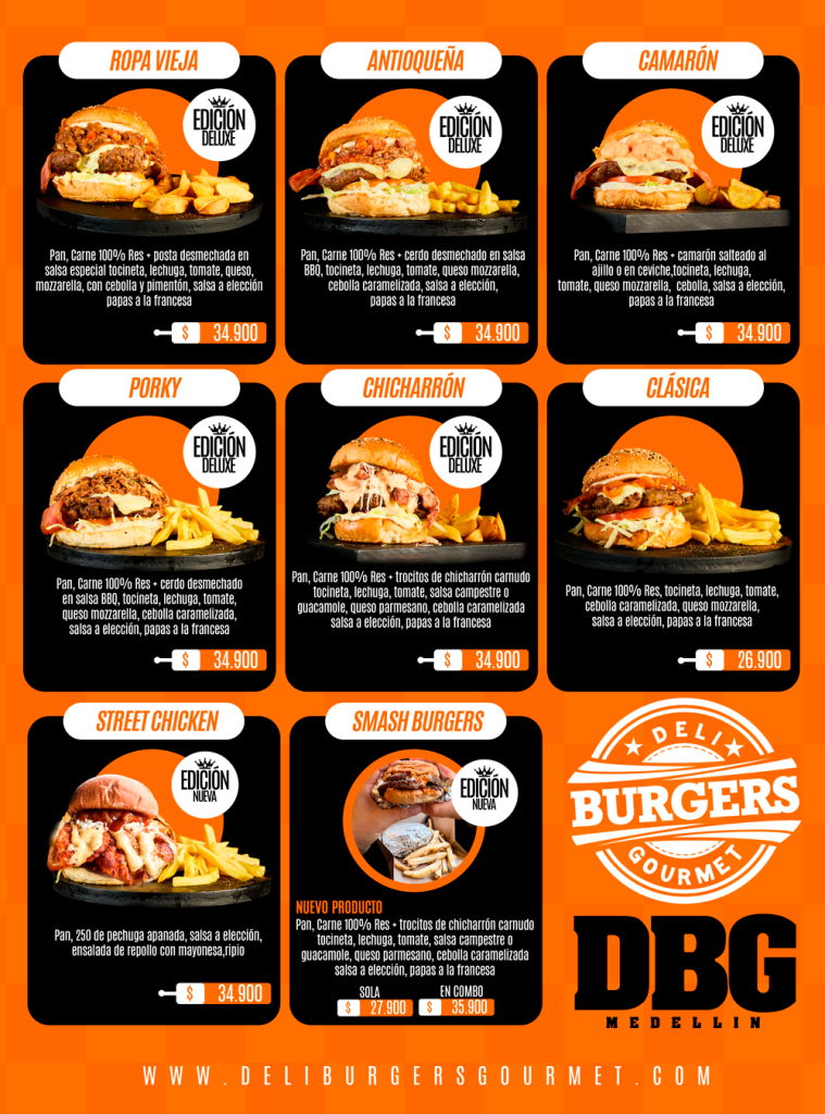 Pan, lechuga, tomate, carne de res 200g, queso mozarella, tocineta, pollo en juliana, BBQ, ajonjoli, cebolla caramelizada, salsa casera, papas a elecciòn.